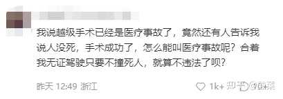 我说越级手术已经是医疗事故了,竟然还有人告诉我说人没死,手术成功了,怎么能叫医疗事故呢?合着我无证驾驶只要不撞死人,就算不违法了呗?