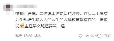 搁我们医院,当你说出这句话的时候,往后二十届实习生规培生新入职的医生的入科教育都有你的一份传说,主任早交班还要骂一遍。