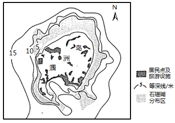 石珊瑚是一种与虫黄藻共生的造礁生物,生长在热带浅海礁石海床上,对水温和水质要求高,出露水面易死亡。涠洲岛是我国北部湾的一个火山岛,目前已成为全球珊瑚研究的重要实验地和旅游胜地。下图示意涠洲岛石珊瑚分布。据此完成11~13题。