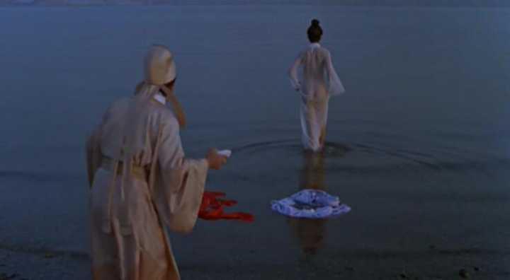 玄机却是寂寞的,世人爱她的风流却无法真正理解她的追求。她一个人宽衣解带,曼妙的酮体只裹着一层轻纱,缓缓走入湖中,如同湖上的清莲,月光中的神女,只留一个背影给站在沼泥里的醉酒诗人,而她向往去到更广阔的天地。