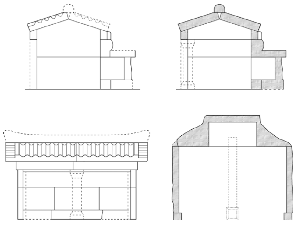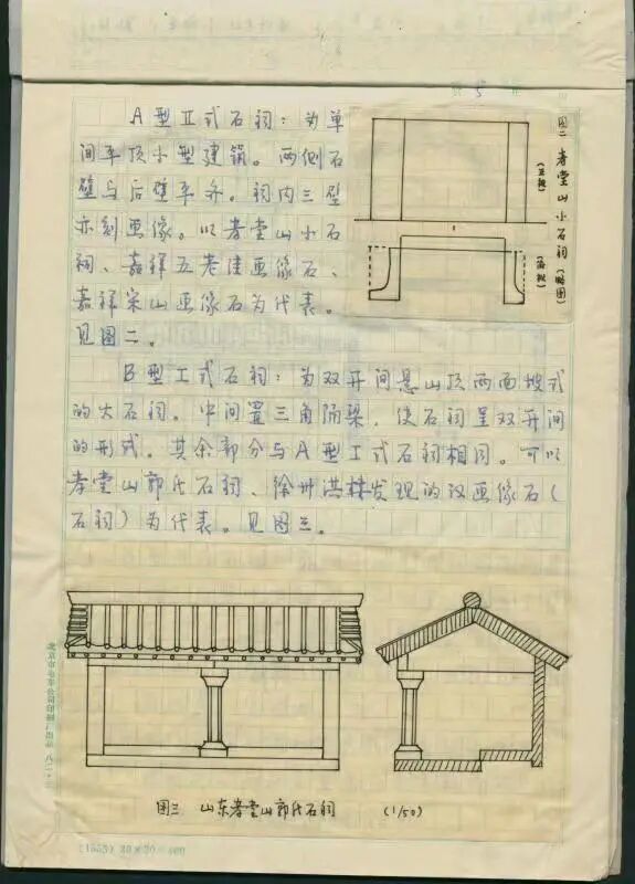 同时,我们还可以从另一角度分成A型石祠和B型石祠。A型石祠为单间,包括Ⅰ式、Ⅱ式,前者为大石祠,悬山顶;后者为小石祠,平顶。B型石祠为双开间,包括Ⅰ式、Ⅱ式,都是大石祠,前者无后室,后者有后室。