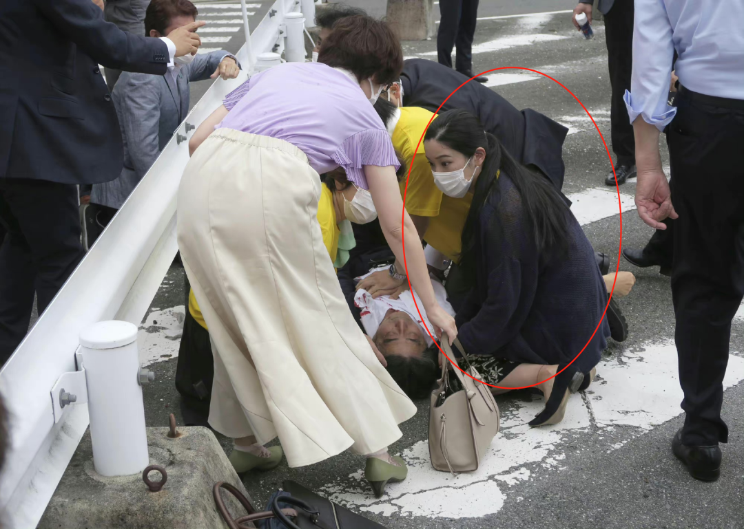 而安倍中枪后是缓缓捂着左胸口倒地的——待他倒地后,诸多警卫和保镖才及时反应过来,进行心肺复苏。