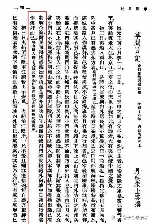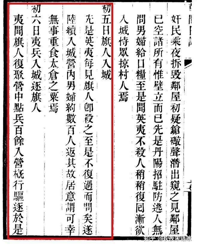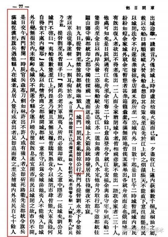 无独有偶,英国《剑桥晚清史》中对此也有明确记载:“最糟糕的是镇江的一位满洲将军,他确信,在英国人从前面进攻时,该城的汉人一定会从后面袭击满洲人。于是他命令一看见形迹可疑的人就抓起来,此后中国居民一看到满洲士兵走近时就惊恐地逃走。显然有些士兵一见有逃跑者就把他们杀死,用他们的尸体去领赏。这样的恐怖笼罩各地。如在上海,英国人的炮声就被一些居民误认为是满清当局在下令屠城。”