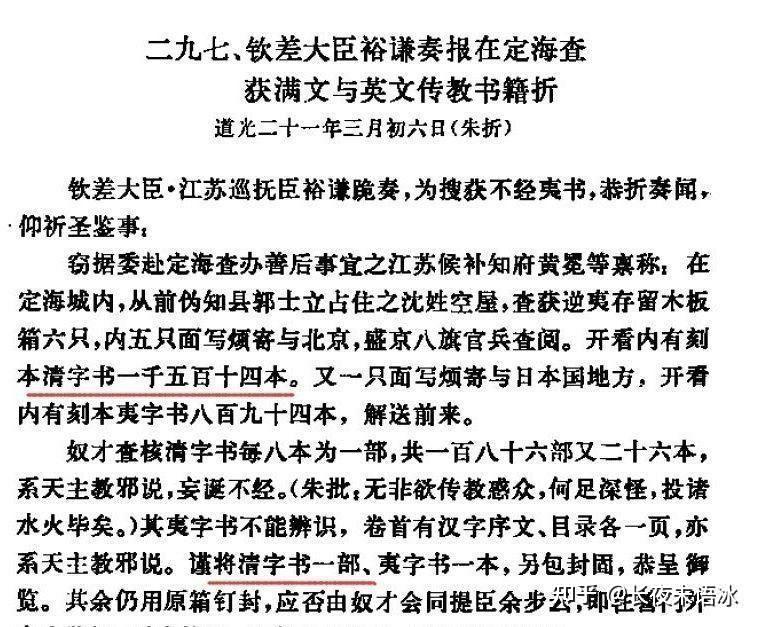 钦差大臣裕谦在定海发现外国传教士居住的房间里,有大量满文书籍,感到非常吃惊,认为八旗里面可能有叛徒通夷,请求调查。