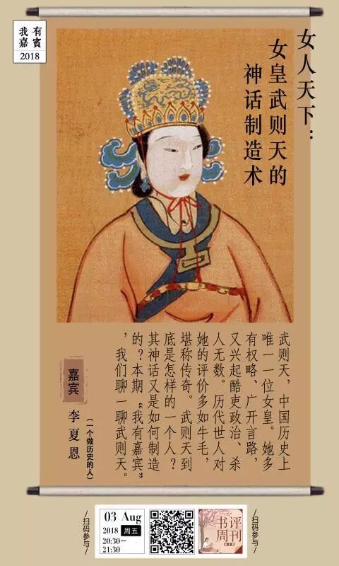本期“我有嘉宾”,我们邀请了知名青年历史研究者李夏恩,他来为我们解读女皇武则天的“神话”制造术。8月3日本周五晚20:30,与你不见不散。