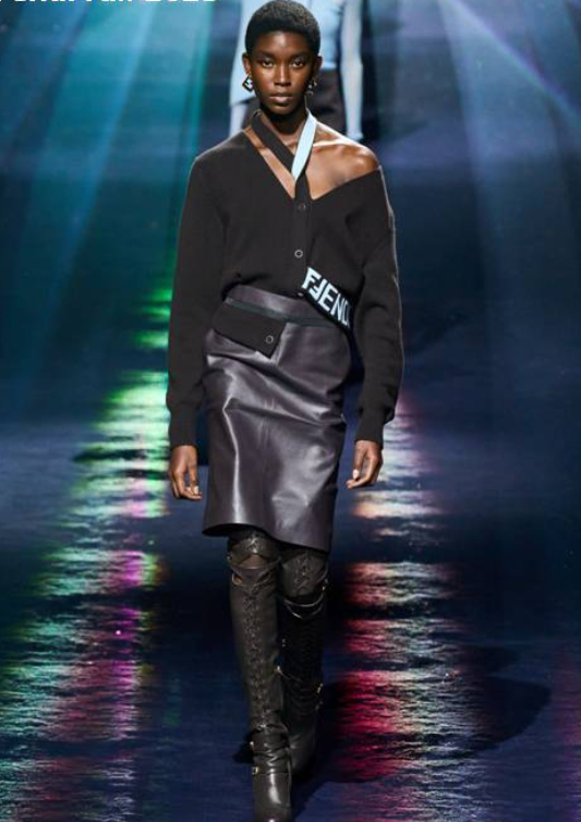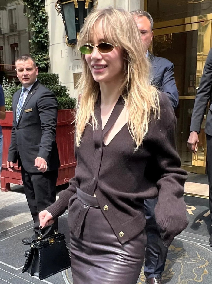 好久不见的水房妹子!离开酒店去参加Fendi 2023 秋冬高定系列发布秀,软糯针织衫搭配皮裙和皮靴,上身很比弗利,下身很五十度灰