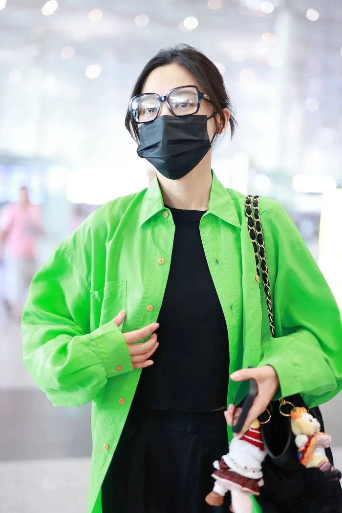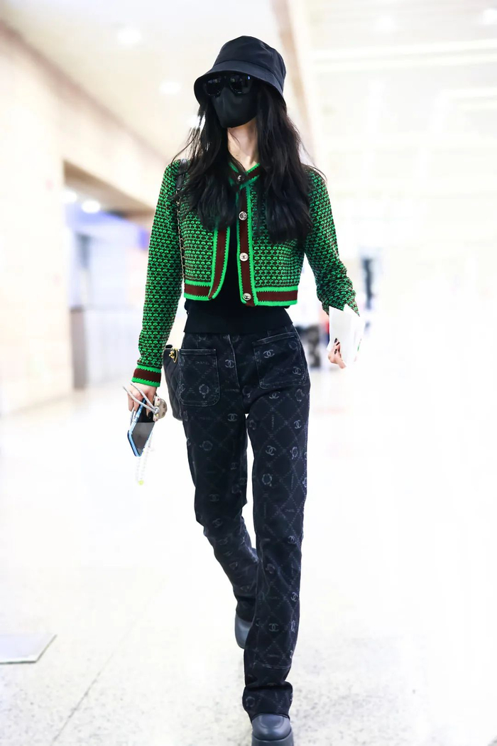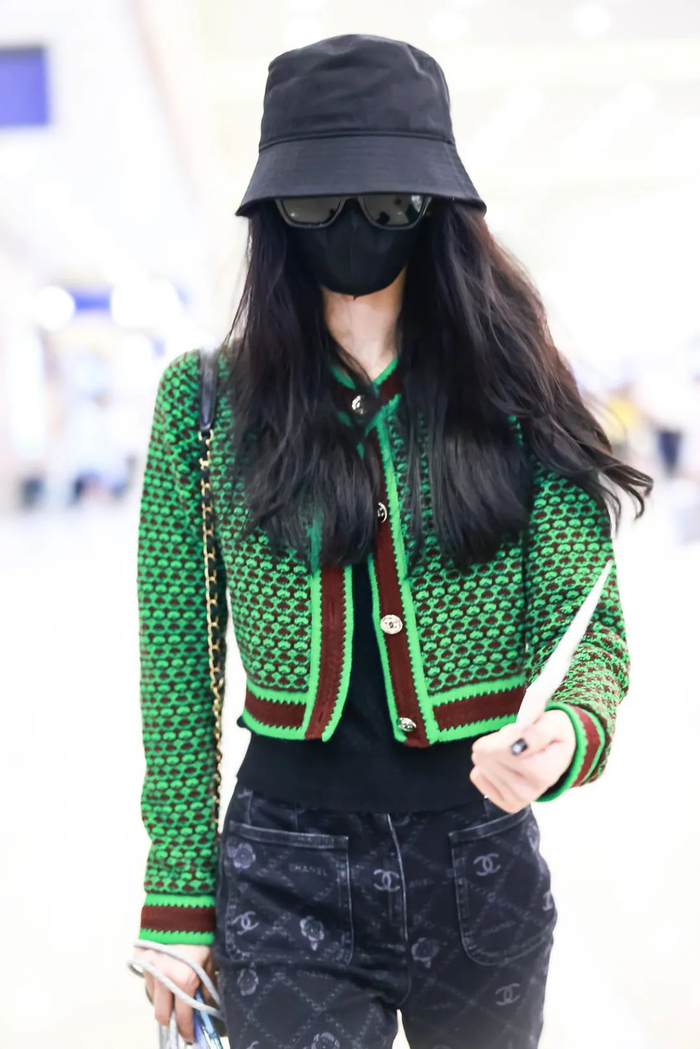 结束巴黎高定时装周日程回国的诗诗,猜测是太疲惫了,脖子以上的皮肤是一丁点都看不到…… 不过这套衣服很显身材,祖母绿的短款小香风外套真是懂比例的,气质和大长腿是谁在羡慕啦!