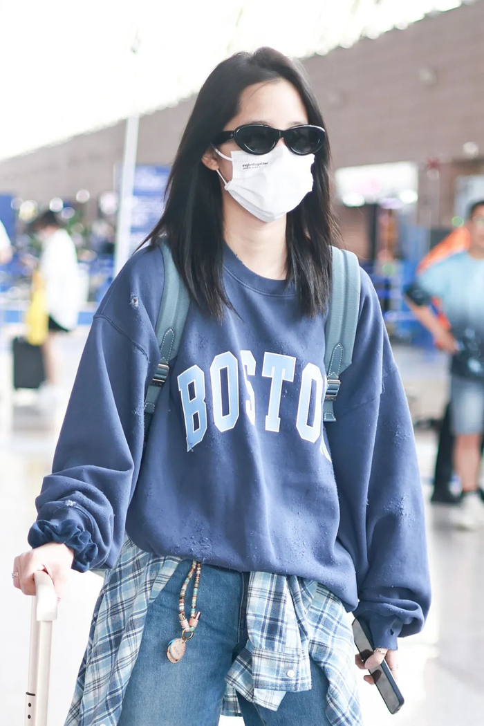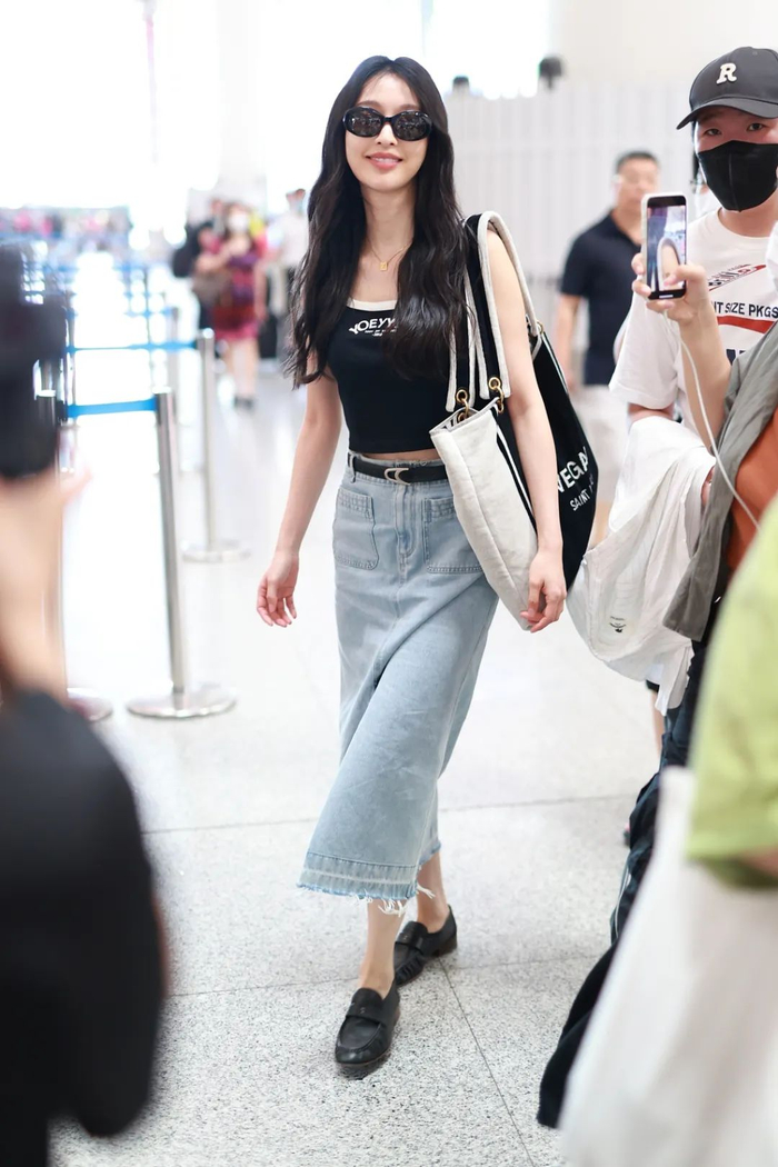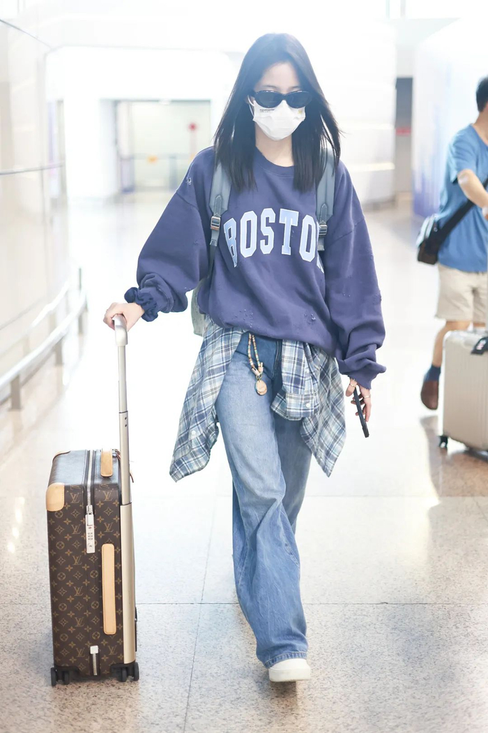穿搭依旧是她“简单至上”的原则,坑条针织top被好身材撑的很有形(哈哈~),略带点小设计的牛仔裤和凉鞋很适合坐飞机。