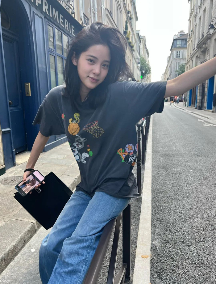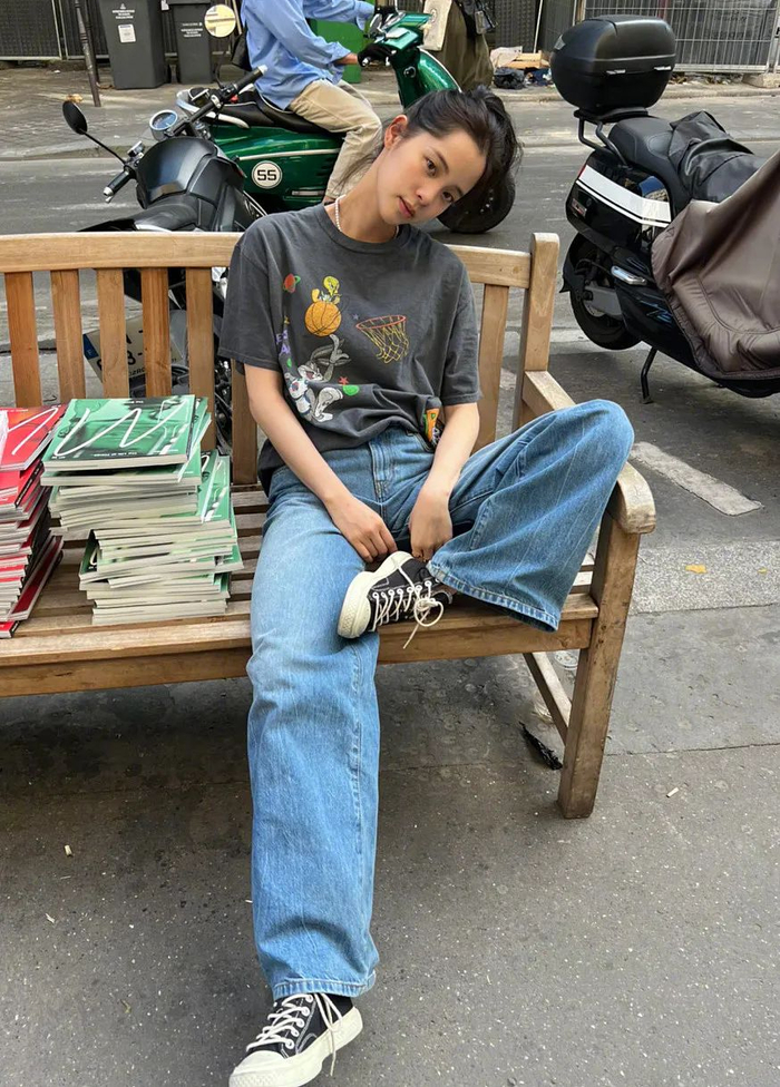 再附上娜比的巴黎街头随拍!这身是元气满满的街头少女风,可可爱爱的T恤找了很久没找到出处,估计是在哪家中古店淘的吧,有报友知道嘛?