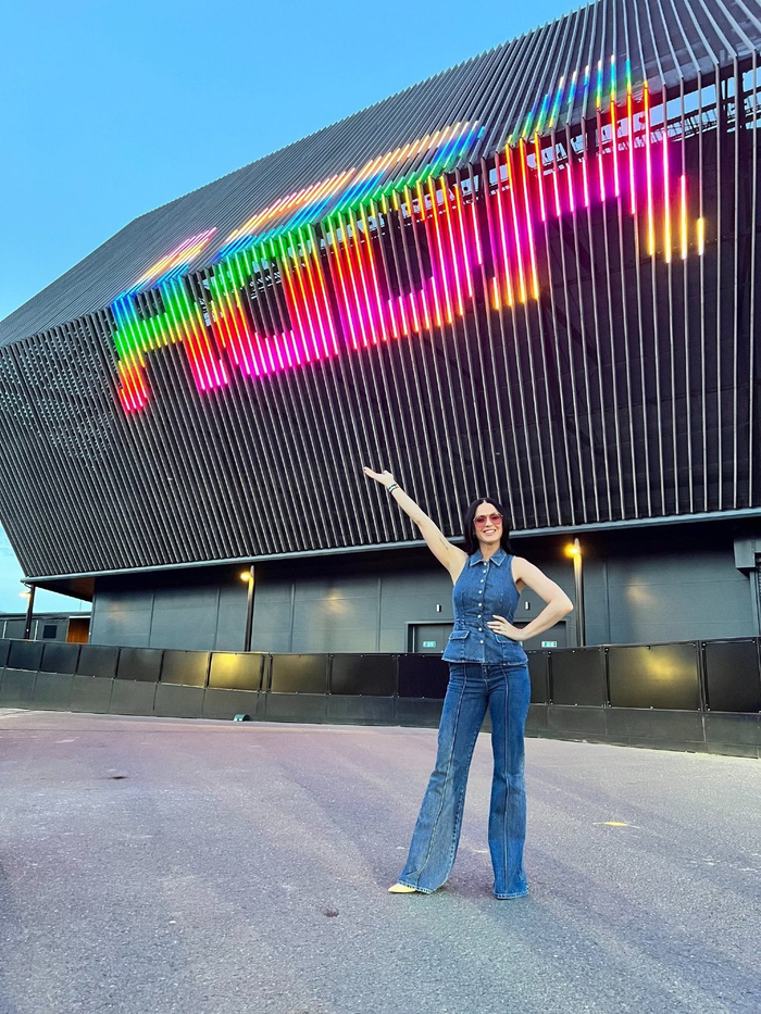 这天还去观看 ABBA Voyage 演出来着,得意小可爱pose大赏一下。