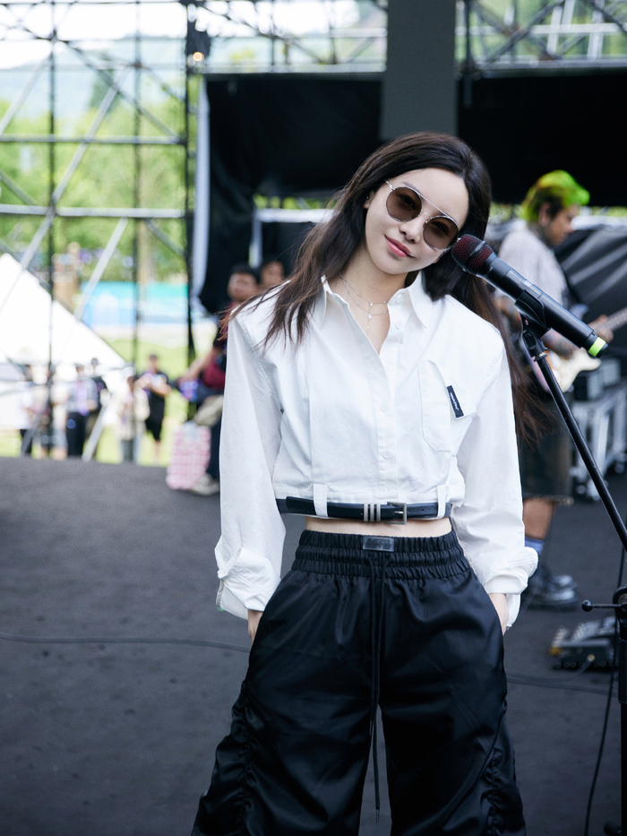 原来是去参加音乐节的,真就穿着这一身直接去了!可以的。