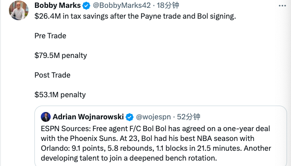 值得一提的是,太阳在连续操作之后,省下了大约2640万美元的奢侈税。同时这笔交易也让太阳队获得了一个650万美元的交易特例。