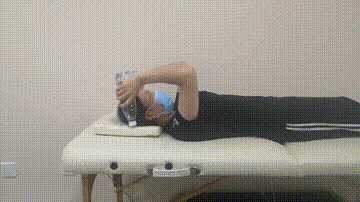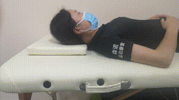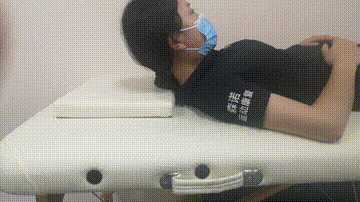 (3)颈部运动:身体平躺、将头向前屈伸,使下巴贴近胸部,反复动作十次左右。