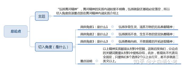 总论点=主题+切入角度。主题不难理解,切入角度,是指阐述主题的哪个方面,文章笔墨重点围绕特点主题是写“是什么”,还是“为什么”,亦或是“怎么办”,主题和切入角度在命题人在题干和材料中实际上都预设好了。