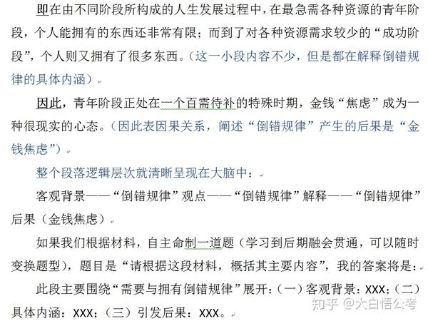 大家可以仔细来做一下这道题目,然后再对照下我的作答逻辑思路,看看我们材料的本质规律是不是这样的,这道题我做了很多遍,最后才觉得把逻辑思路吃透。