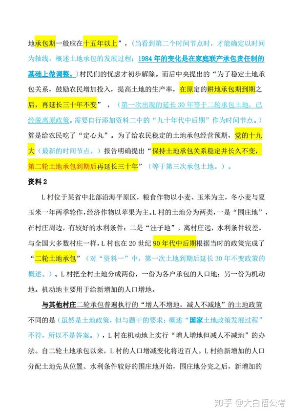 下面举个例子:2018年国考地市级申论真题给定资料1和给定资料2反映了改革开放以来我国农村土地承包政策的发展过程,请你概述这一发展过程。(10分)要求:(1)准确、全面、有条理;(2)不超过200字。