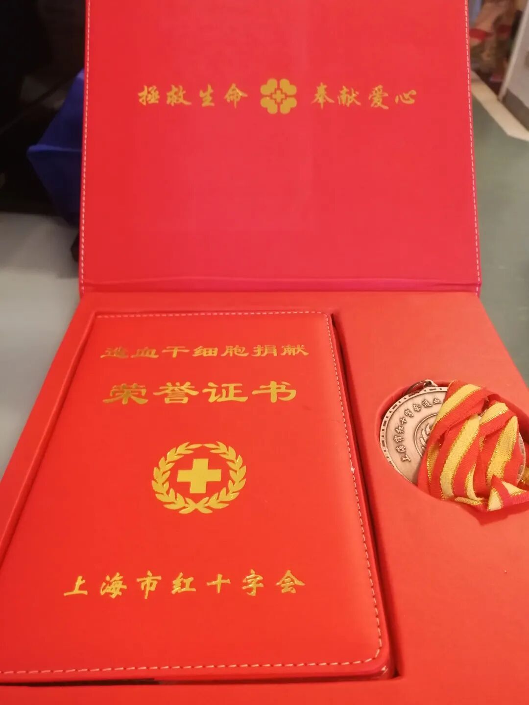 红十字会给每个捐献者发的红彤彤的证书和章丨作者供图