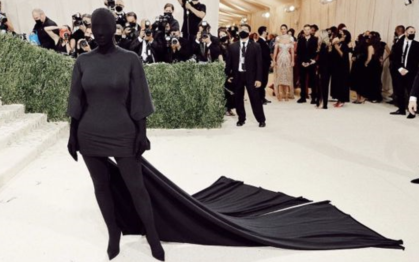 去年的MetGala,金·卡戴珊又将自己搞成了《柯南》里的小黑,从头到脚看不到一点其他色彩。