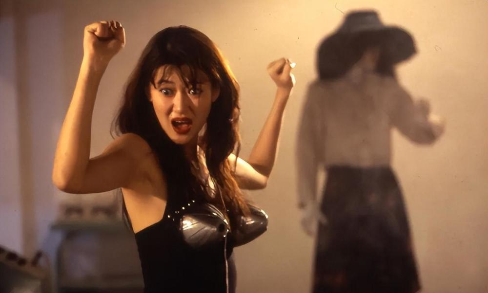 尤其在胸部,还有两坨螺旋形的条纹装饰,看得人两眼发晕,瞬间让皮哥穿越到了《国产凌凌漆》里陈宝莲饰演的爱美神。