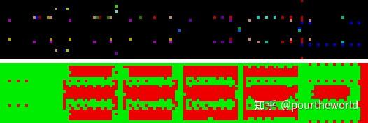 The Probe Ray Data texture (zoomed, brightened) from the Cornell Box sceneRayData 所用的纹理坐标对应代码 DDGIGetRayDataTexelCoords :