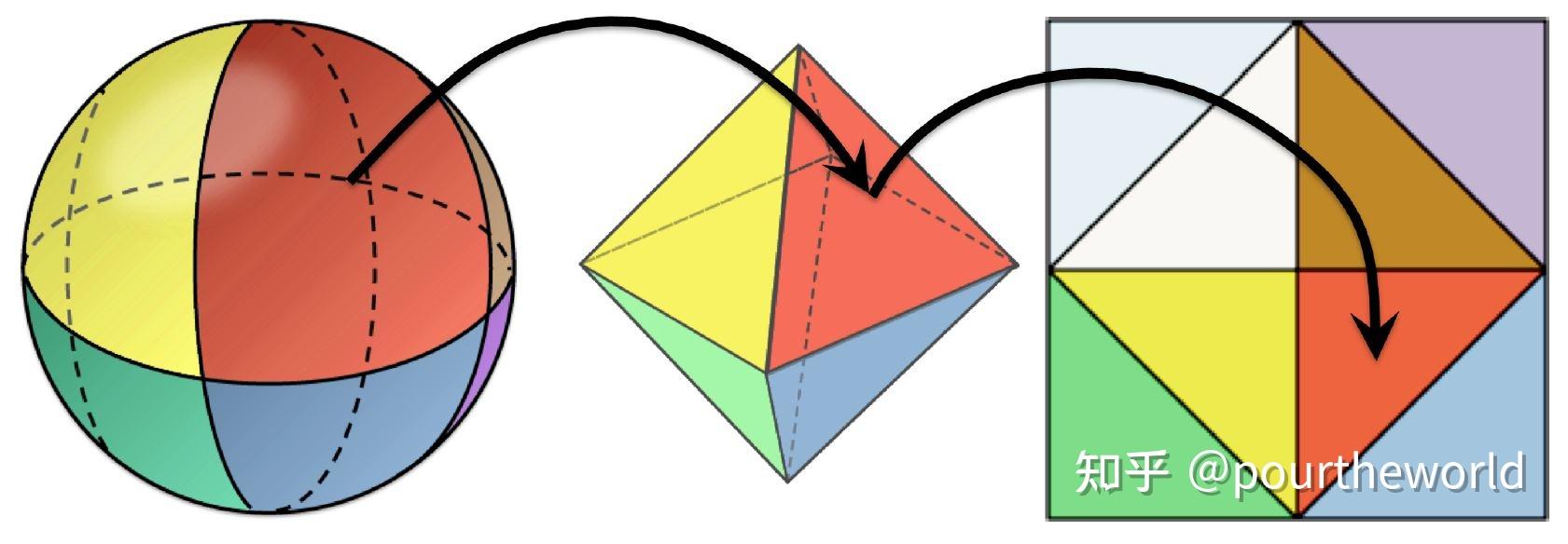 不同的是,每个 slices 中的 row 和 column 由 3D grid-space 坐标经过 octahedral parameterization[16] 后以 Octahedral map 的形式表示: