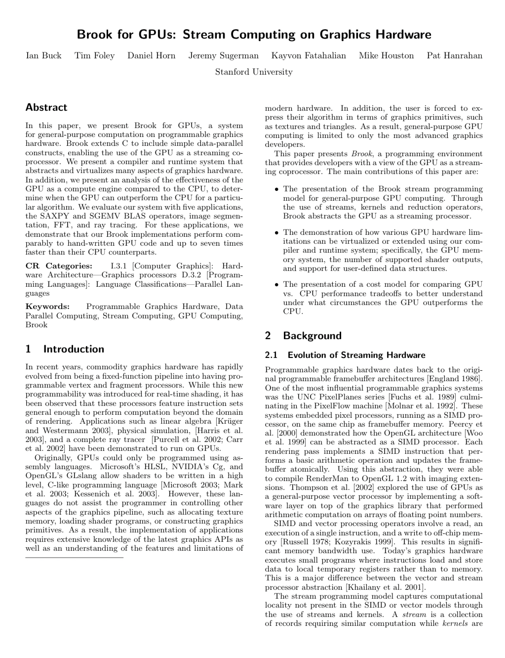 Brook,CUDA的前身,发表于图形学顶刊ACM TOG,一作Ian Buck现为英伟达高性能计算部门经理我们可以看到,一项研究带来巨大商业价值是依赖了后续的工程投入和一些机遇的。同时,我们也很难预测一项研究到底给未来带来什么样的可能性。