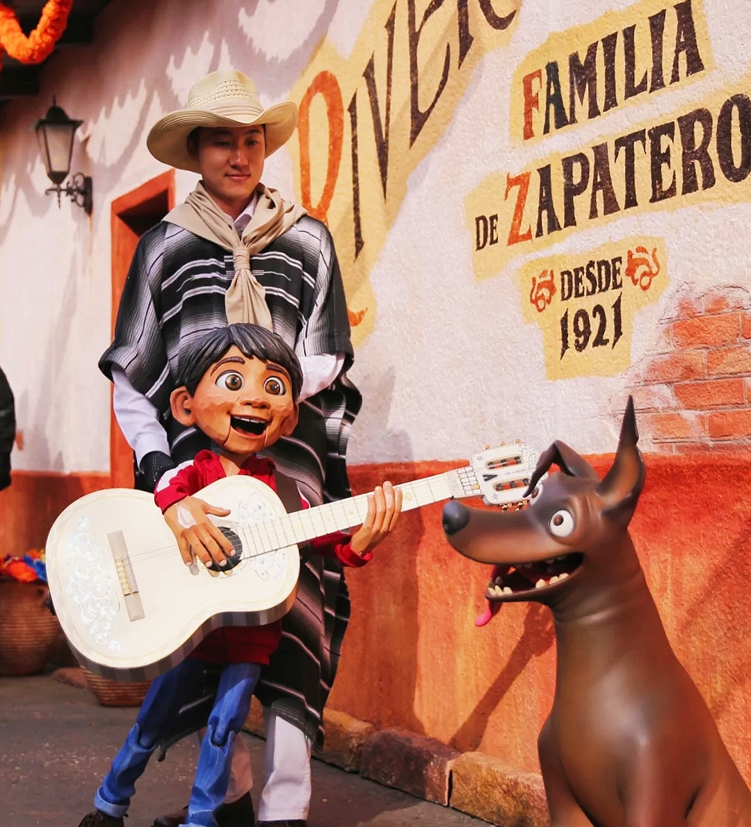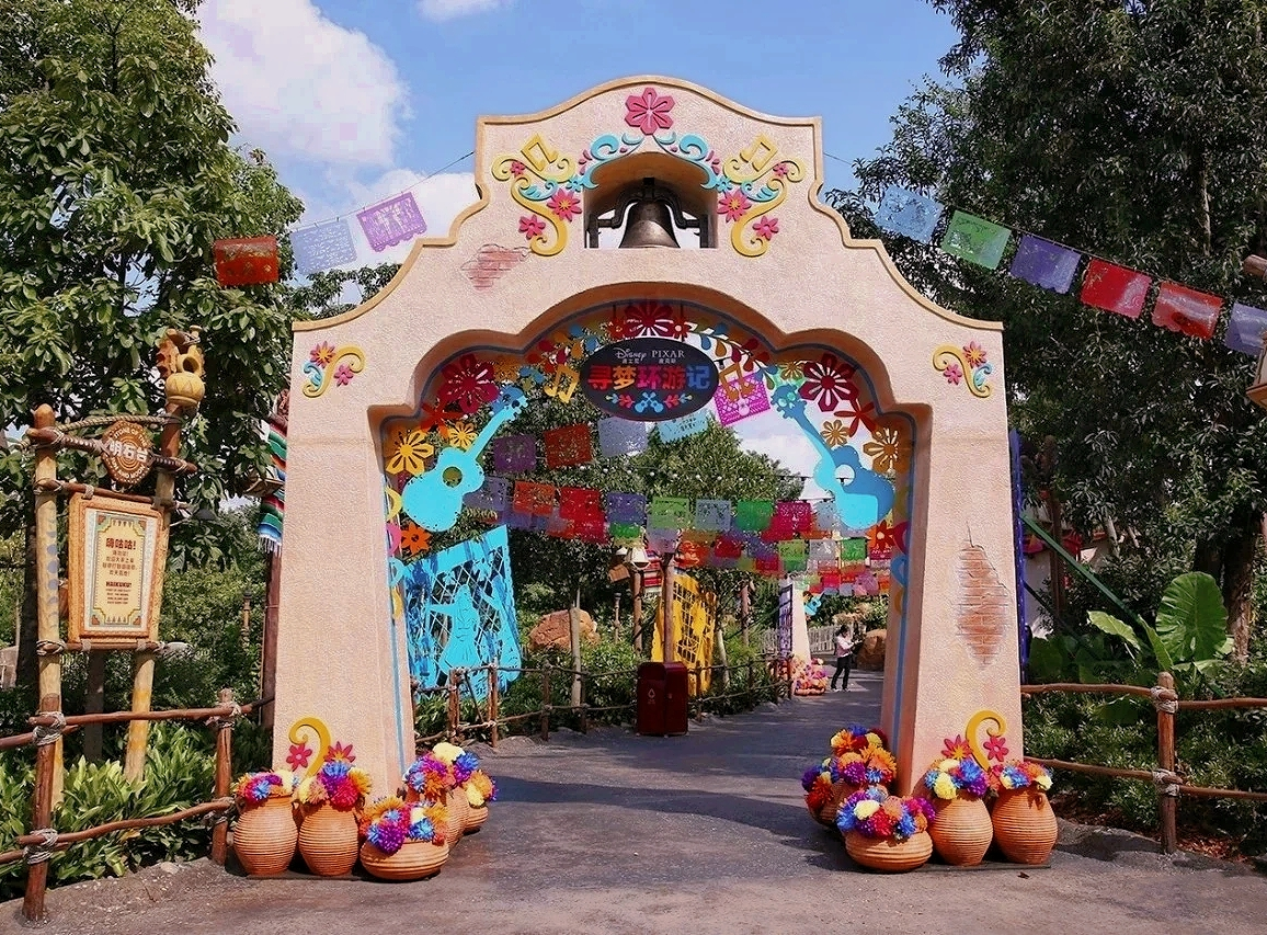 3 、寻梦环游记冒险岛 :今年墨西哥男孩米格带着他的好朋友但丁又重返迪士尼舞台了!主题区还原了万寿菊元素和纸雕彩旗,在现实世界复刻了电影场景,尤其是米格的家乡——圣塞西莉亚,这里是主题区内最出片的拍照点之一,一定要去这面墙前打卡留念!