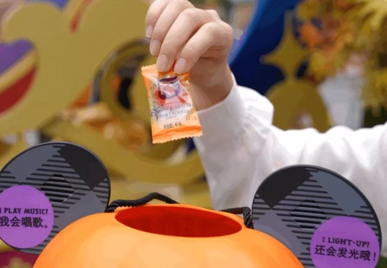 2、免费糖果 :看到工作人员提南瓜说“不给糖就捣乱”就可获得米奇软糖;指定地点在小镇商户和世界商店,时间是17:00-20:00;活动一共分为三个时间段:10月15-17、22-24、28-31日,大家不要错过~