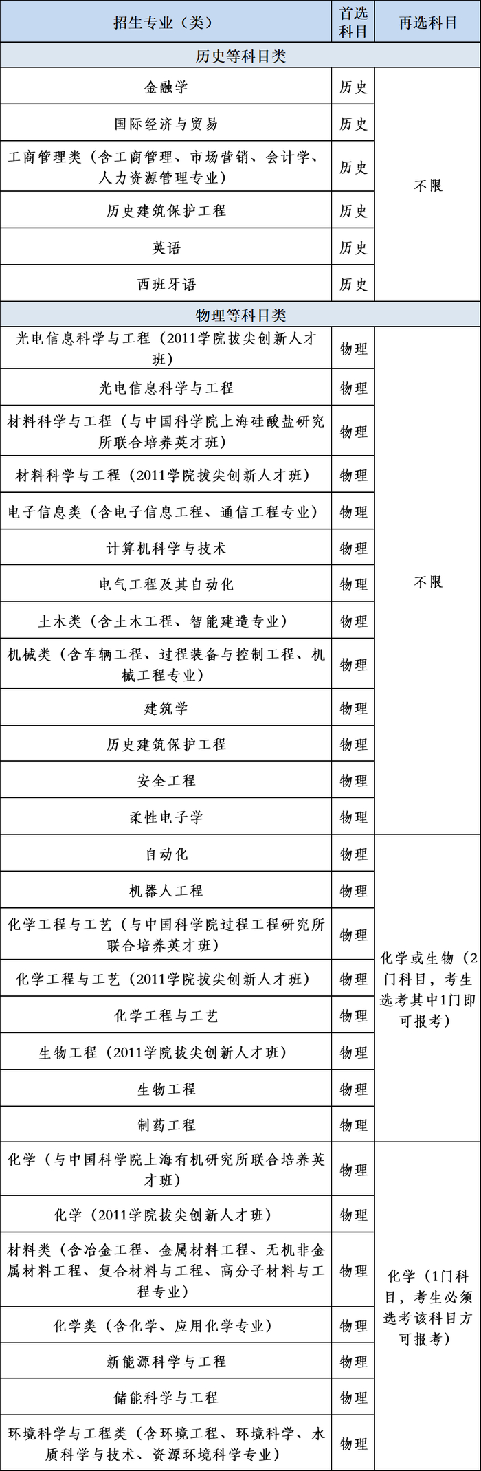 (一)经济管理试验班:首选科目为历史,再选科目不限。大一结束时学生可在经管学院的所有专业内选定主修专业;