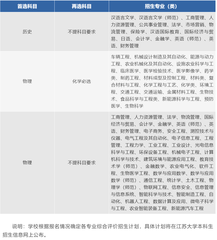 2022年在江苏省投放普通本科提前批次招生计划的同时,另外投放综合评价招生计划,具体招生代码、招生大类及计划等最终以江苏省教育考试院公布的为准。