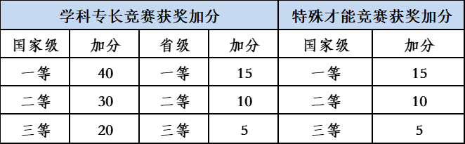 学科专长竞赛获奖加分仅为全国中学生奥林匹克(数学、物理、化学、生物、信息学)竞赛。同一学生同一学科奥林匹克竞赛获奖只计最高奖,不累计加分。