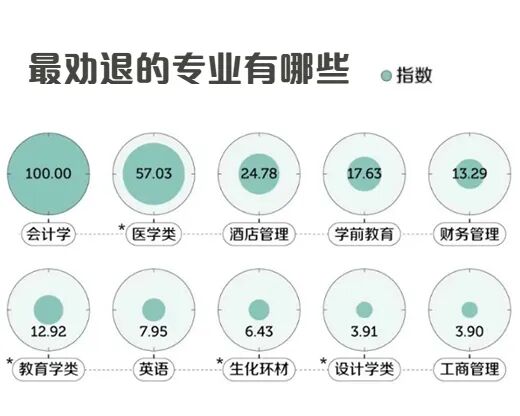 被专业坑害而遭受社会毒打的年轻人们积极投身于专业劝退的行列。他们有的动之以情,用头顶的斑秃现身说法;有的晓之以理,援引历年红牌专业等数据。在他们留下的千字“陈情书” 中,字里行间就差直白地告诉你“快跑”了。