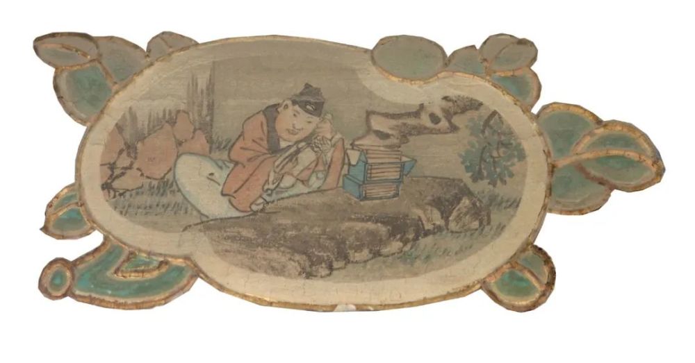 如挂角,即牛角挂书:《新唐书·李密传》:“以蒲鞯乘牛,挂《汉书》一帙角上,行且读。”画面描绘的是:一天,李密骑牛外出求学,为了抓紧点滴时间,途中他将一部《汉书》挂在牛角上,边走边看。李密好学的事被当朝宰相杨素得知后,觉得他非比寻常,遂与他结交成为忘年之友。