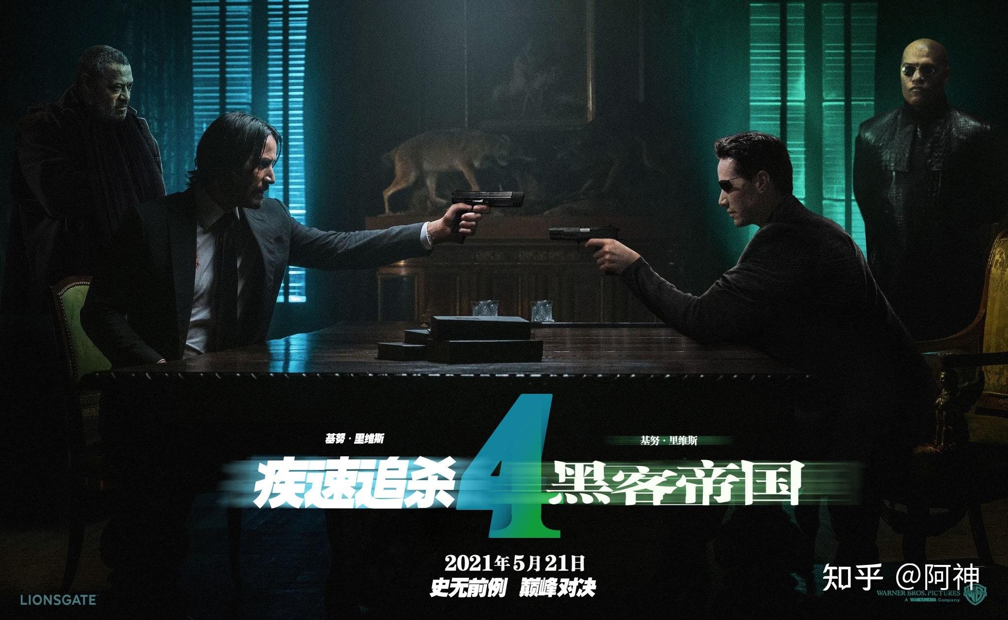 当时宣发甚至发布了官方的“VS”左右互搏版海报,无奈的是受疫情影响,两部片子的拍摄进度不断延迟,无法同步跟进进度,最终《黑客帝国4》选择在今年上映,《疾速追杀4》目前定档2022年5月27日。