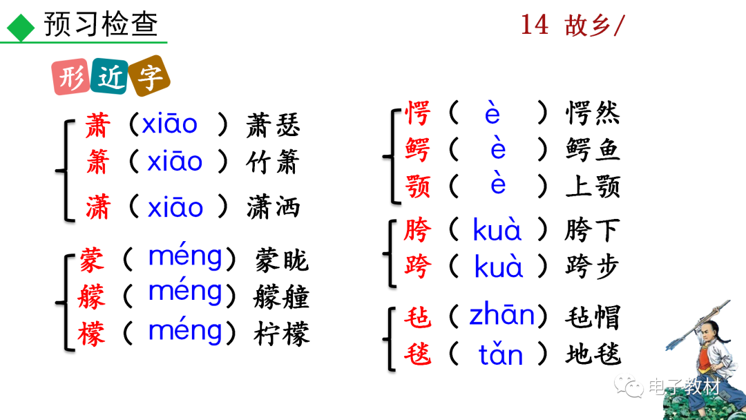 解析 注意形近字和同音字,如“萧”不要写成“箫”。