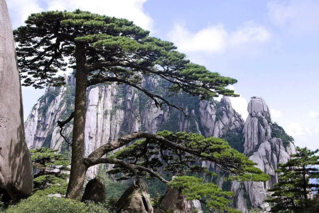 黄山名松众多,最有名的还是迎客松。她挺立在玉屏峰前狮石旁、文殊洞之上,破石而生,寿逾千年,姿态苍劲。树形平展如盖,侧枝横空斜出,似在展臂迎客,已经成了中华民族对外友好的象征。给我印象很深也很感慨的还有团结松。她诸根盘结,侧干众多,团团簇簇,围抱生长,既同享雨露,枝叶茂盛,又共抗风寒,雄伟挺拔。站在团结松面前,团结的重要性真是不言而喻啊。纵观古往今来,我们都有这样一个体悟,凡是有合力的地方就是有活力的地方,凡是有合力的事业就是有生机的事业,凡是有合力的民族就是有希望的民族。团结出战斗力、生产力、凝聚力,团结利党、利国、利民,团结也是利己的,是有益于个人的心情舒畅和身体健康的。
