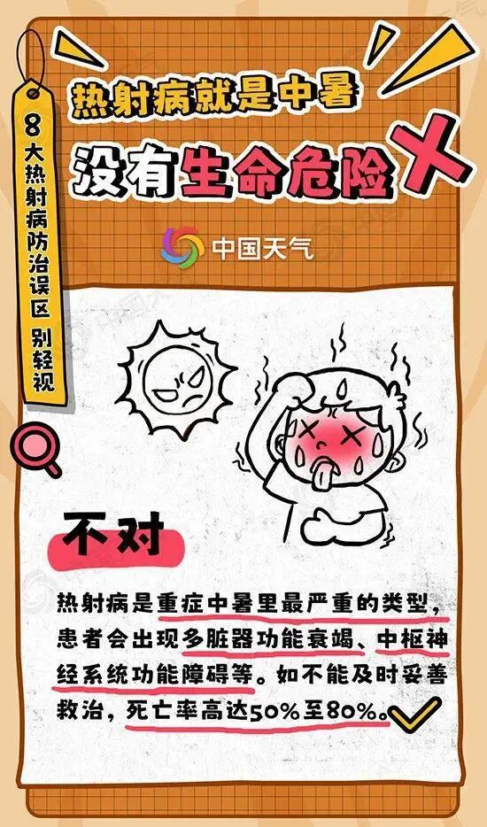 热射病的8大误区误区一热射病就是中暑,不至于有生命危险。不对。
