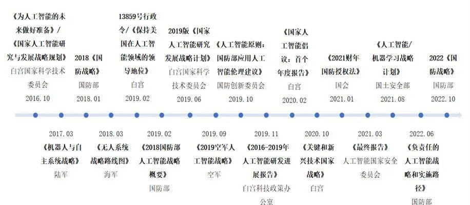 人工智能作为国家战略的一环,应成为国家发展战略的重要组成部分。近两年美国政府、美国国防部及各军种等均将人工智能作为优先发展事项,出台了一系列上下衔接配套的战略规划文件,指定或成立相关机构管理和推动美军人工智能的发展。
