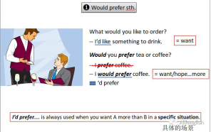 以漫画形式,结合典型例句,详解would prefer/would rather的用法、区别及常见错误表达。