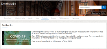 为支持全球抗疫,截至2020年5月底,Cambridge University Press出版的700余本教科书均免费向公众开放。