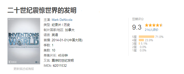 这绝对算是一部宝藏级别的科普片,每一集45分钟,展示每十年中的10到15项开创性发明。