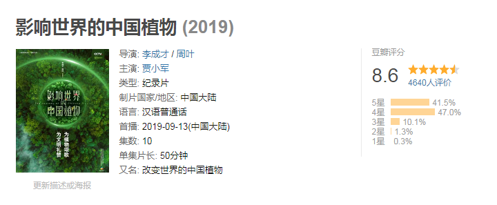 今天,小编为您精选了6部高品质纪录片,在保证专业性的同时,又不乏趣味性、故事性,还能让孩子增加知识。最最最重要的就是有观影链接哟!赶快来看看吧:01《影响世界的中国植物》