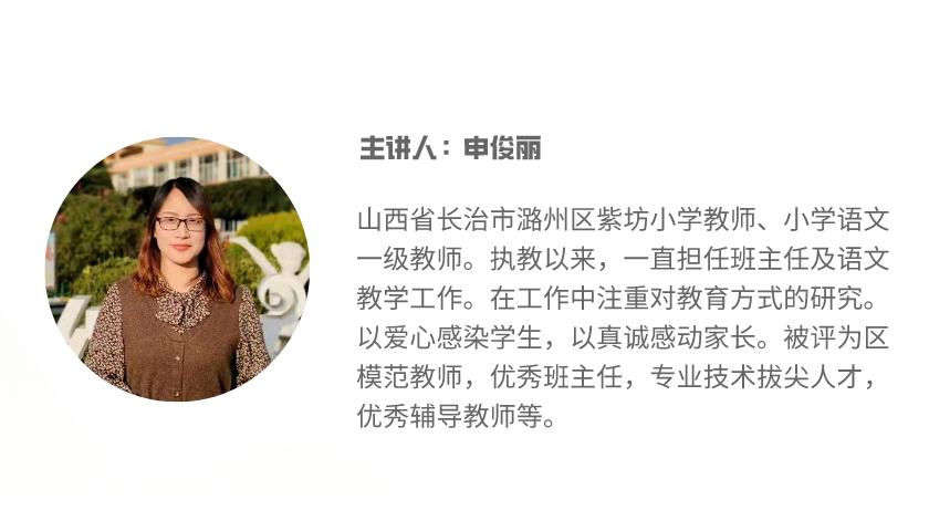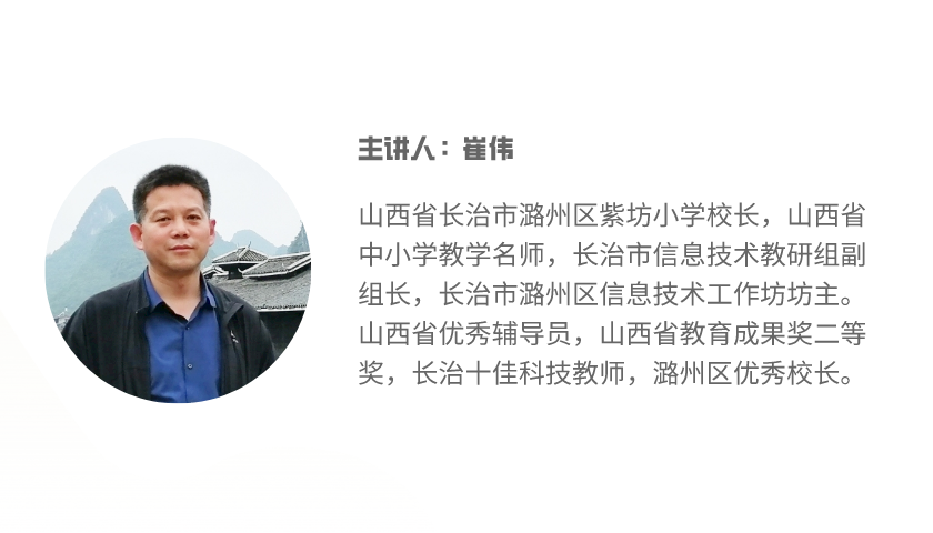 本周四的直播活动,我们将邀请山西省长治市紫坊小学崔伟校长针对“基于网络学习空间的学科育人的实践与思考”进行专题讲座,同时还将邀请该校的申俊丽老师与观看直播的老师们围绕学科育人话题进行分享与交流。欢迎对以上主题感兴趣的老师关注第六期教师成长营第二场云端直播活动《基于网络学习空间的学科育人的实践与思考》。