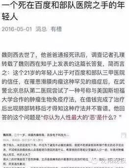 《一个死在百度和部队医院之手的年轻人》。