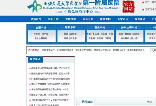 公开资料显示,2014年11月20日,西安交通大学第一附属医院“生物免疫治疗中心”正式成立并举行揭牌仪式。西安交大一附院耿剑平书记、陕西省卫计委黄立勋副主任、西安交通大学颜虹副校长等几十名领导和专家参加了此次揭牌仪式。这是该省首家省卫计委备案认可的生物免疫治疗中心。