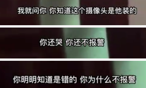 而且母亲呢,面对失控的女孩,依然沉默不语。看到这里,姑娘心里更难受了,她大声问母亲:”我问你,你知道这个摄像头是他(继父)装的,你还没有报警?你知道这是不对的,为什么不报警?”