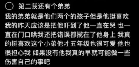而且她之所以做出这样的选择,更多的是为了母亲和弟弟。母亲和继父有一个共同的儿子,现在才上五年级。这位弟弟和她的关系一直很好。事发后,弟弟也不停地安慰她。