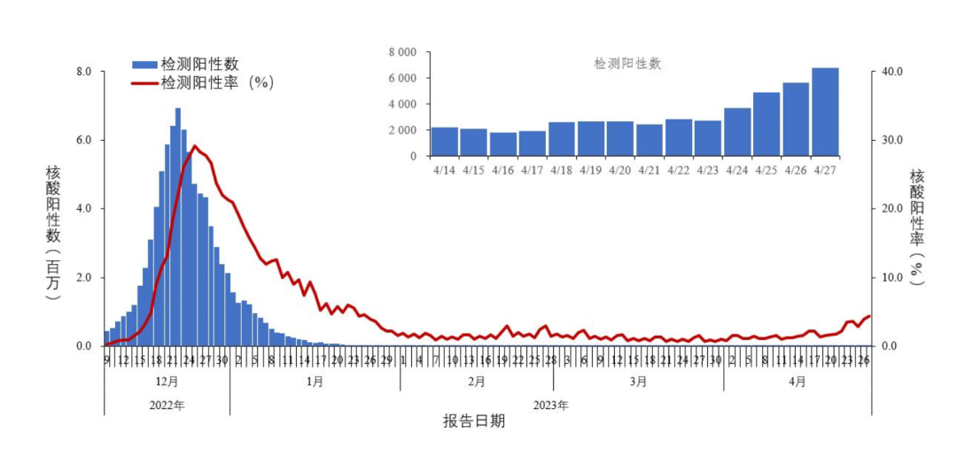 虽然现在大家都不怎么关注,但中国疾控每周都会提供周报,根据数据显示:自2023年4月以来,各省份报告人群新冠病毒核酸检测阳性数及阳性率呈现增加趋势。