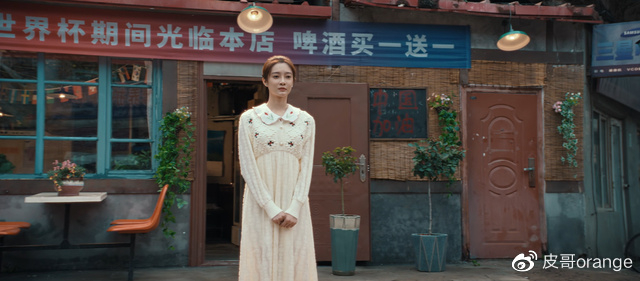 最后,她穿着白色连衣裙站在门口等马达回家的这个场景,几乎和《功夫》中的黄圣依如出一辙。