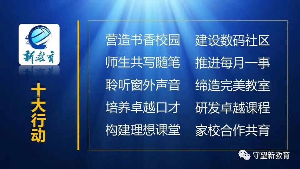 接上期 五、新教育实验的十大行动新教育实验一开始就自觉地把“行动”二字写在了自己的旗帜上。今天的中国缺少的不是批评家,不是理论家,而是真正的行动家。对于一线老师而言,他们需要的是能够解决课堂问题的理论,需要的是行动研究。正如笔者对《中华儿女》杂志记者所说“中国教育有弊端,但怒目金刚式的斥责和鞭挞,虽痛快但无济于事。对于中国教育而言,最需要的是行动与建设。只有行动与建设,才是真正深刻而富有颠覆性的批判与重构”(王海珍,2019)。 2002年,新教育实验最初从昆山玉峰实验学校起航的时候,提出了“五大行动”。后来,我们增加了“构筑理想课堂”,并且提出了“6+1”的家校合作共育。2013年,我们正式提出了新教育的“十大行动”。有人一直追问:新教育的十大行动,内在的结构是什么?理论的逻辑在哪里?我们的回答是:新教育的十大行动不是一个严格的理论体系,而是一个行动的逻辑,是根据当下中国教育存在的问题,为解决当下学校教育面临的困境精心设计和安排的。新教育实验发展的过程中,行动路径也是在逐步完善的。